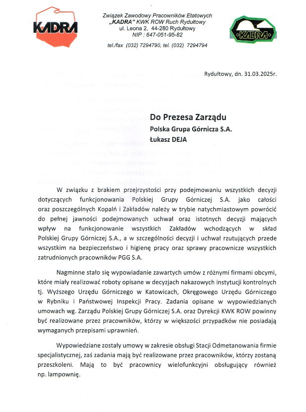 że na chwilę obecną nie ma podpisanego porozumienia z Zarządem PGG.